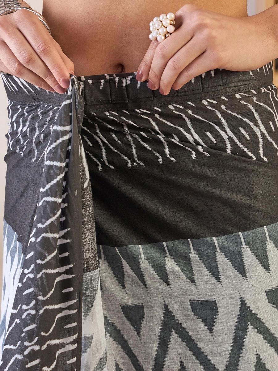 CLOVIRA Pure Soft Mul Cotton Silk Ready-to-Wear Saree with Pocket