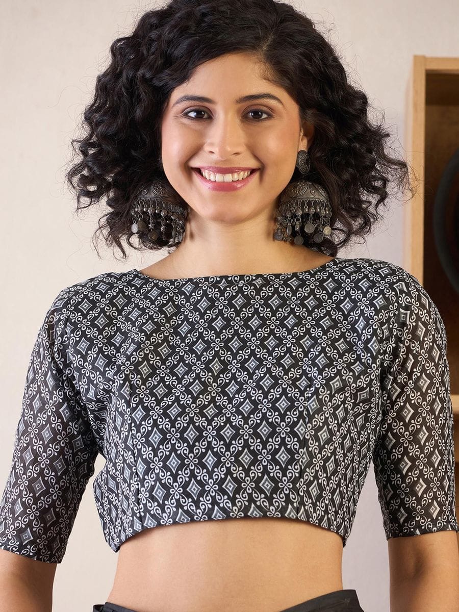 Blouse: Matching Soft Silk Running Blouse Piece (Unstitched) in the Same Model Color
