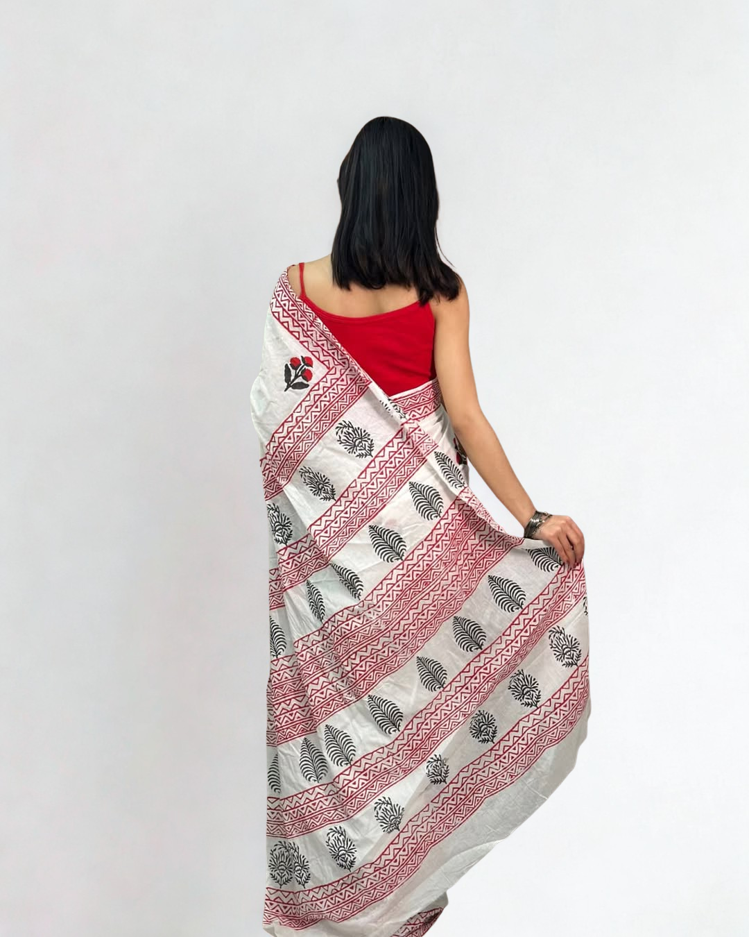 CLOVIRA Pure Soft Mul Cotton Silk Ready-to-Wear Saree with Pocket