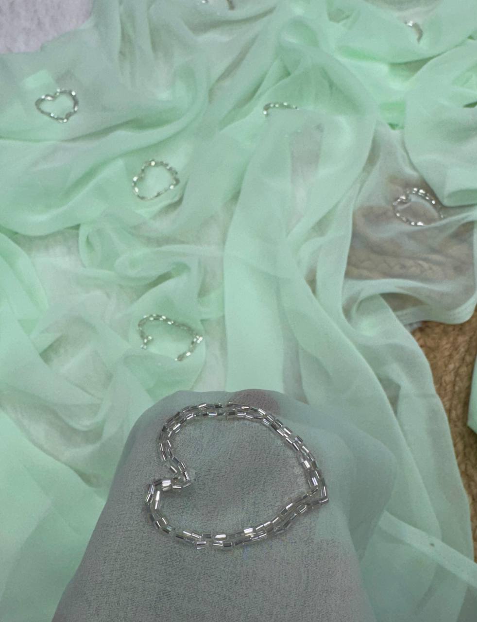Adorned with delicate handwork detailing, this saree radiates understated luxury—perfect for festive gatherings, parties, or celebrations. The pre-stitched design ensures a flawless drape in just one minute, while the matching stitched blouse completes the ensemble with refined elegance.