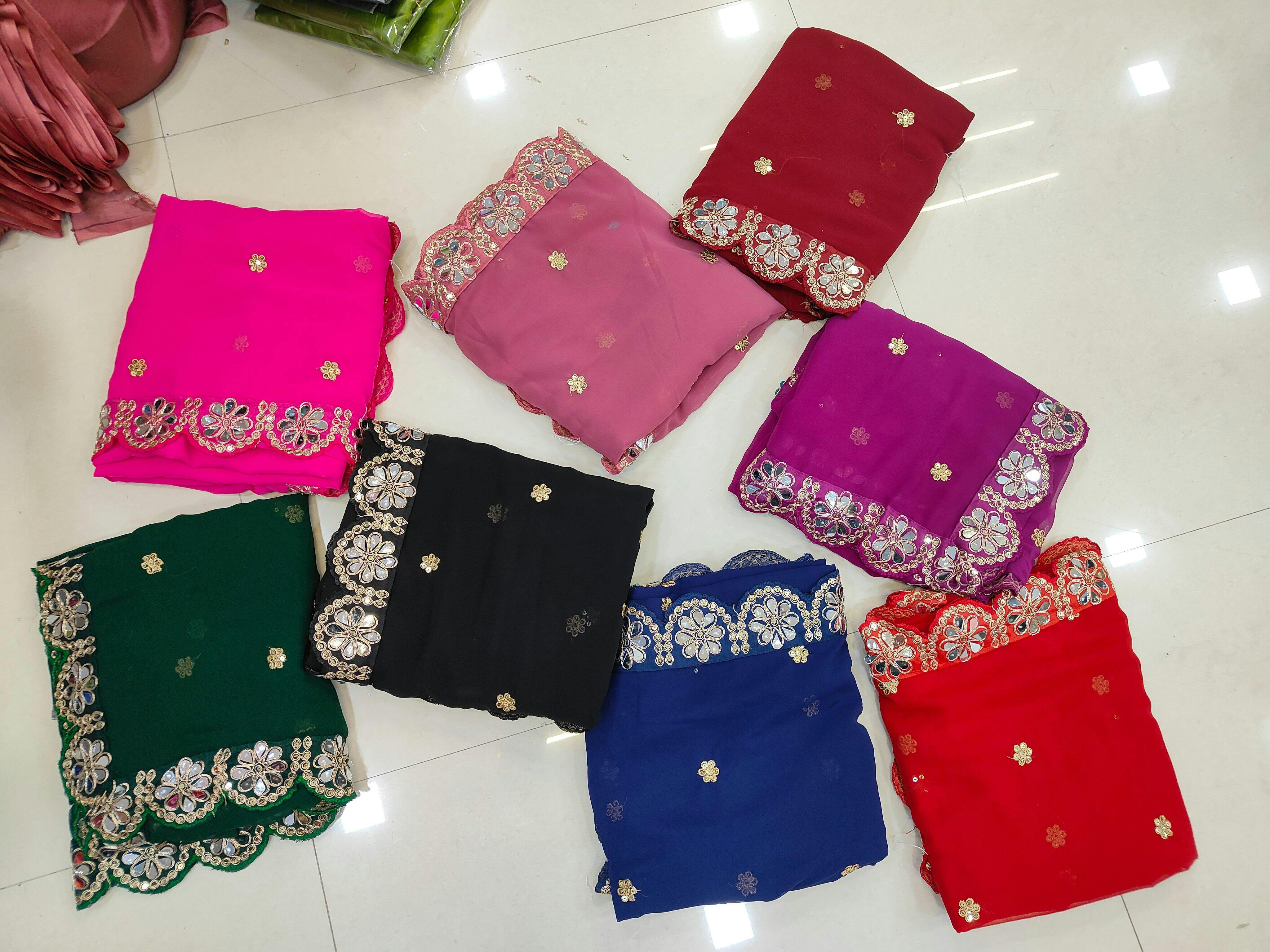 Heavy Faux Georgette Saree with 5mm Sequins & Original Mirror Handwork